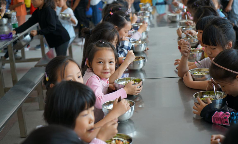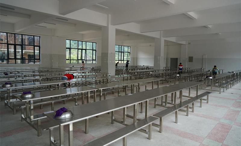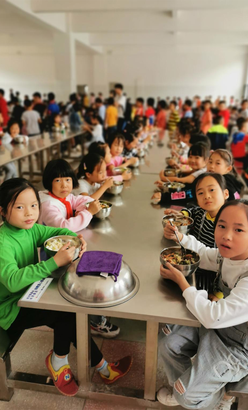 湖南省安化縣奎溪鎮完小現有13個教學班,學生592人,33名教職員工。以前由于學校食堂太小、餐桌破爛不堪,而且沒有凳子,學生們只能分批次就餐,二十幾個孩子圍在四張拼在一起的餐桌旁站著吃飯。為了解決孩子們的就餐環境,學校通過各種努力貸款新修建了學校食堂,新學期已投入使用,但舊的餐桌已無法繼續使用。為保障孩子們能有一個干凈整潔、溫馨如家的食堂,長房集團“藍絲帶”愛心傳遞基金向奎溪鎮完小捐贈了70套不銹鋼餐桌椅,徹底解決了孩子們“站著吃飯”的問題。