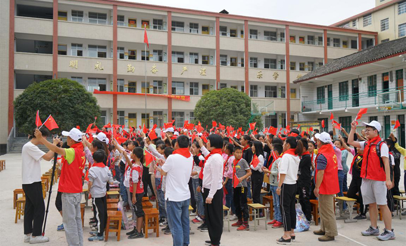志愿者與孩子們齊唱《我和我的祖國》